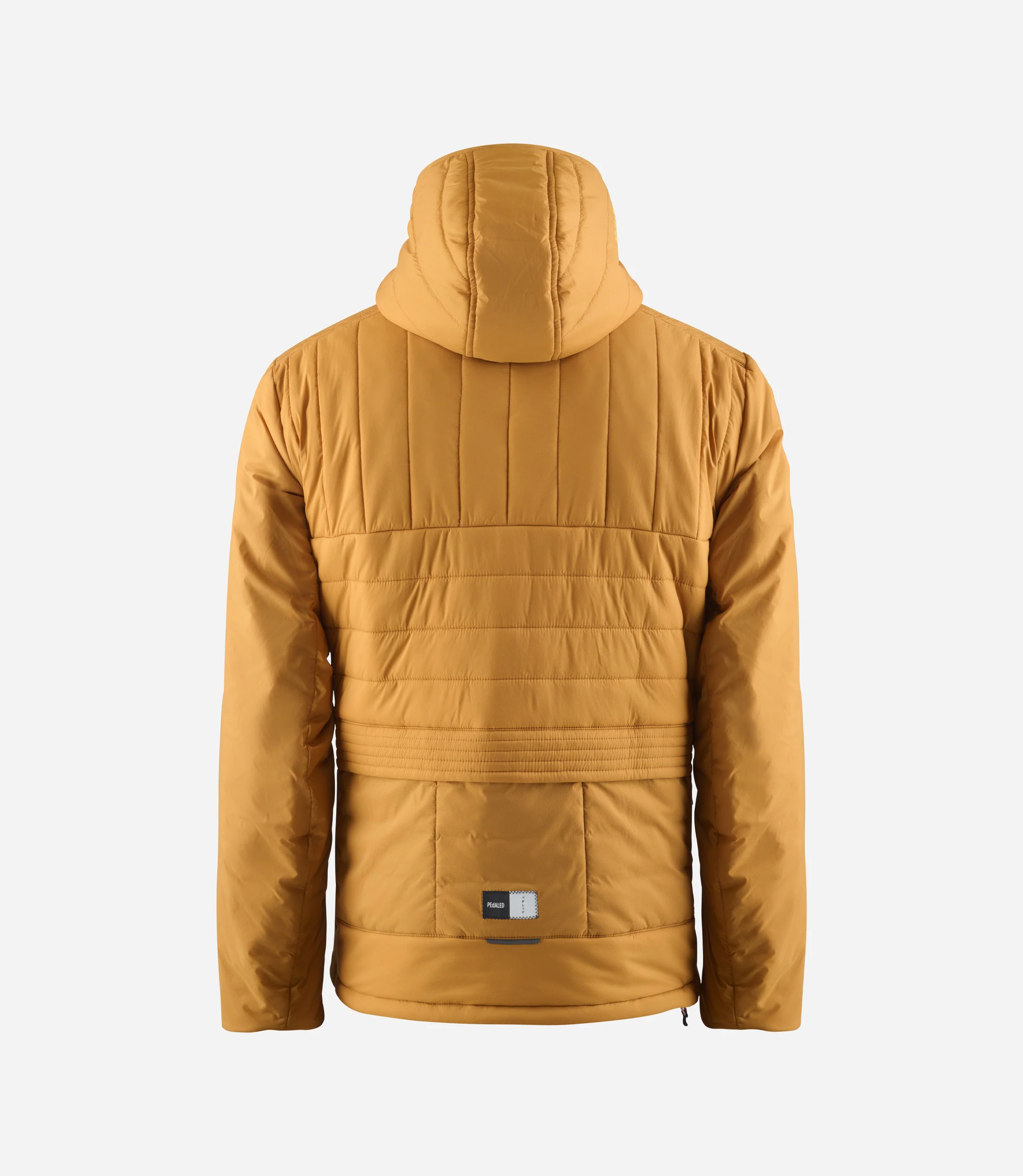 A hooded, insulated cycling jacket, featuring a rider-friendly fit and baffled construction for better lightweight warmth.